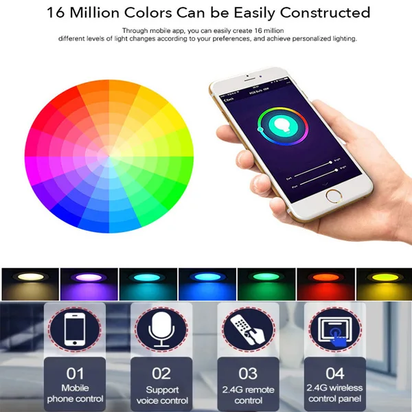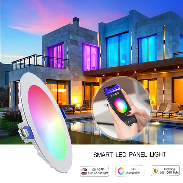 DC 24V RGBCCT Round 6W/12W/18W/24W LED Panel Light Dimmable Compatible TUYA PWM Dali Loxone IP20 Smart Home Lighting